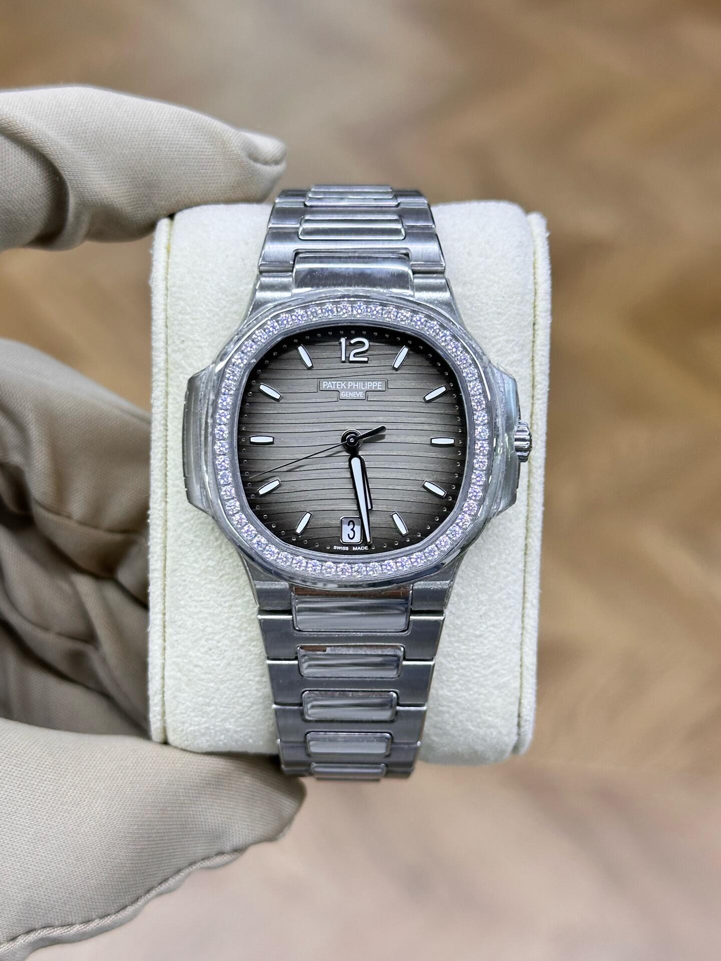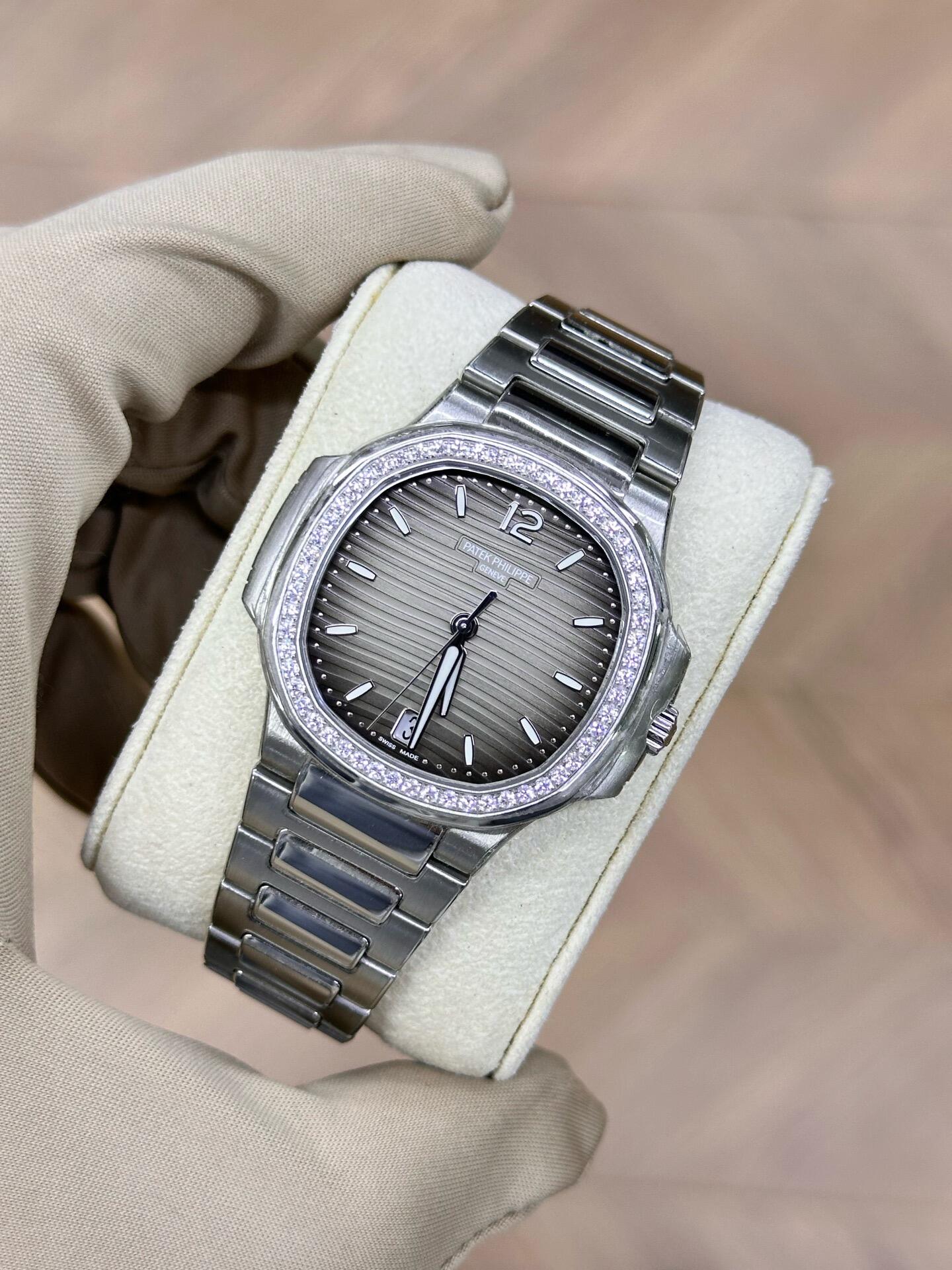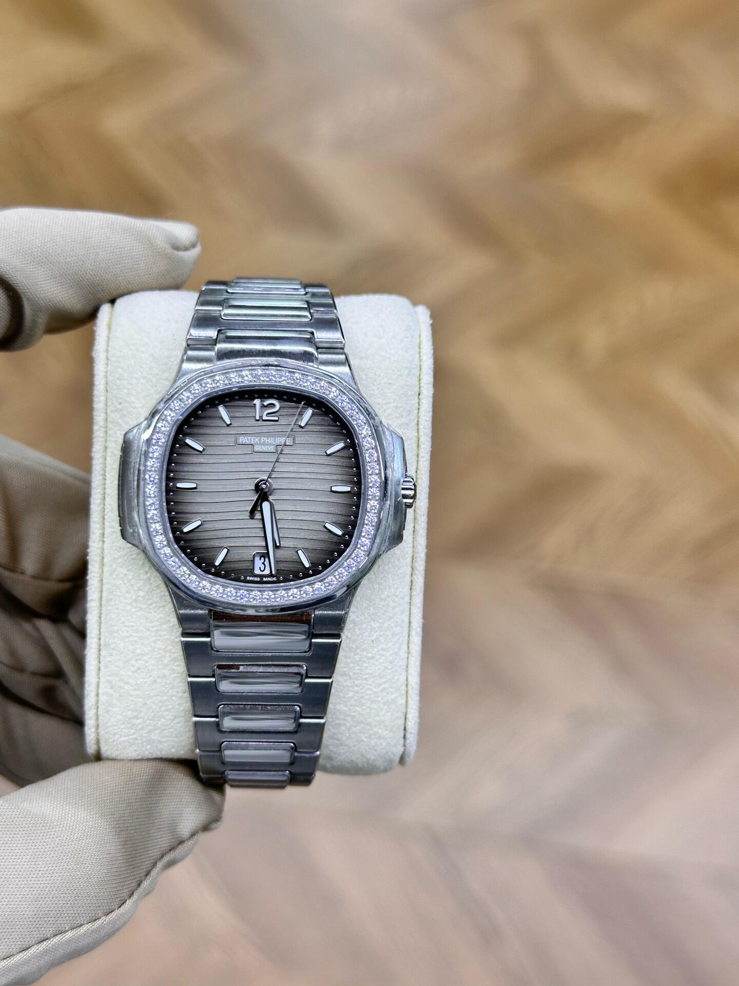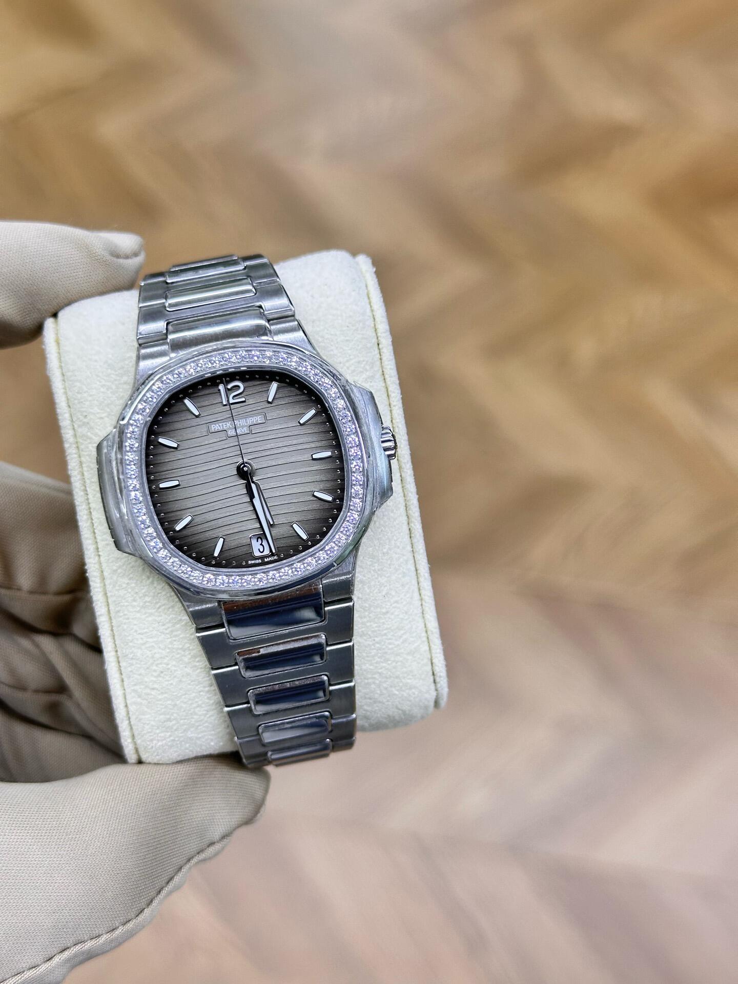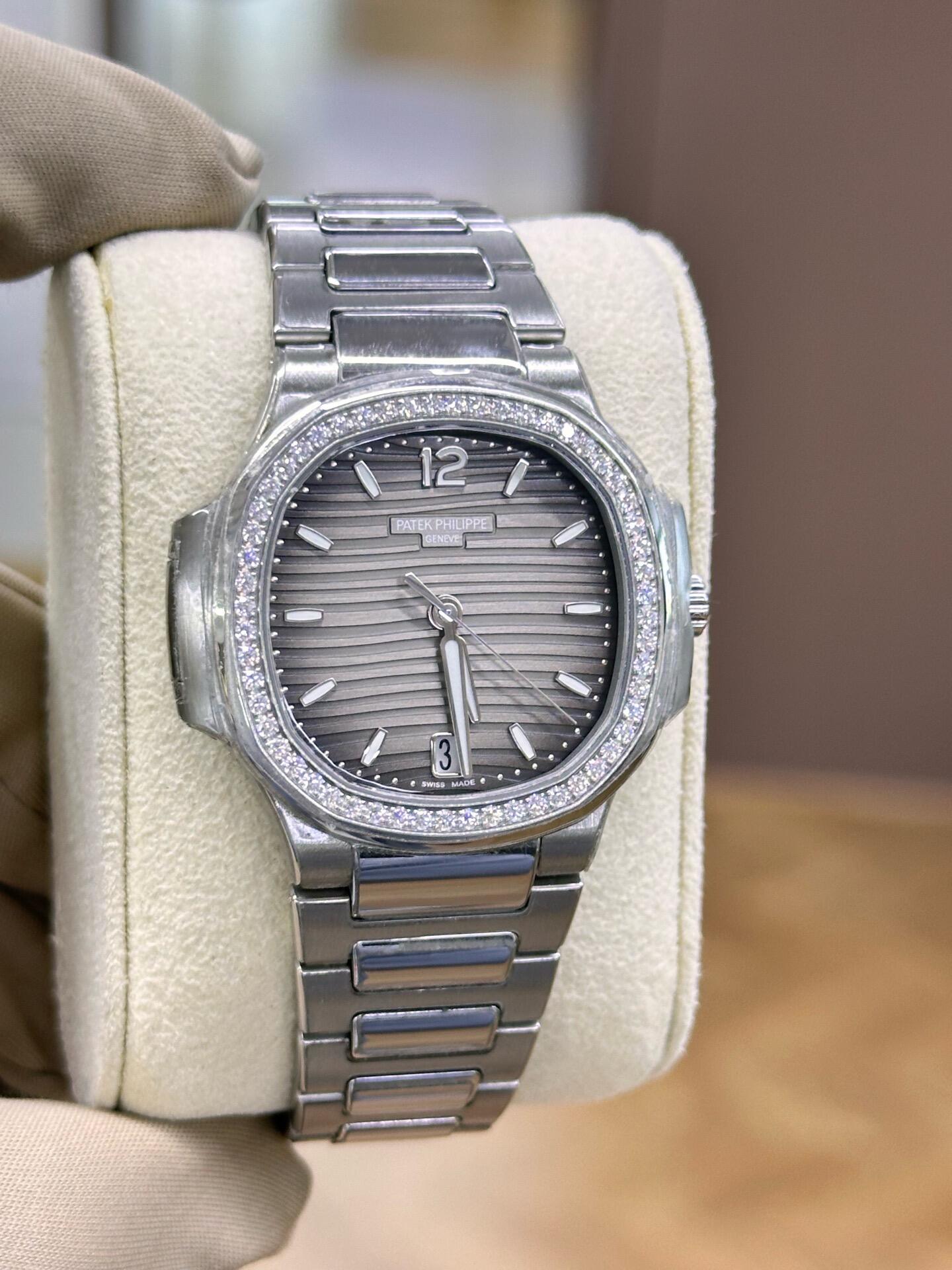 Patek Philippe Nautilus 35.2mm 7118-1200A-011 Gray Opaline Dial & Diamond Bezel in Stainless Steel Bracelet Ladies Watch