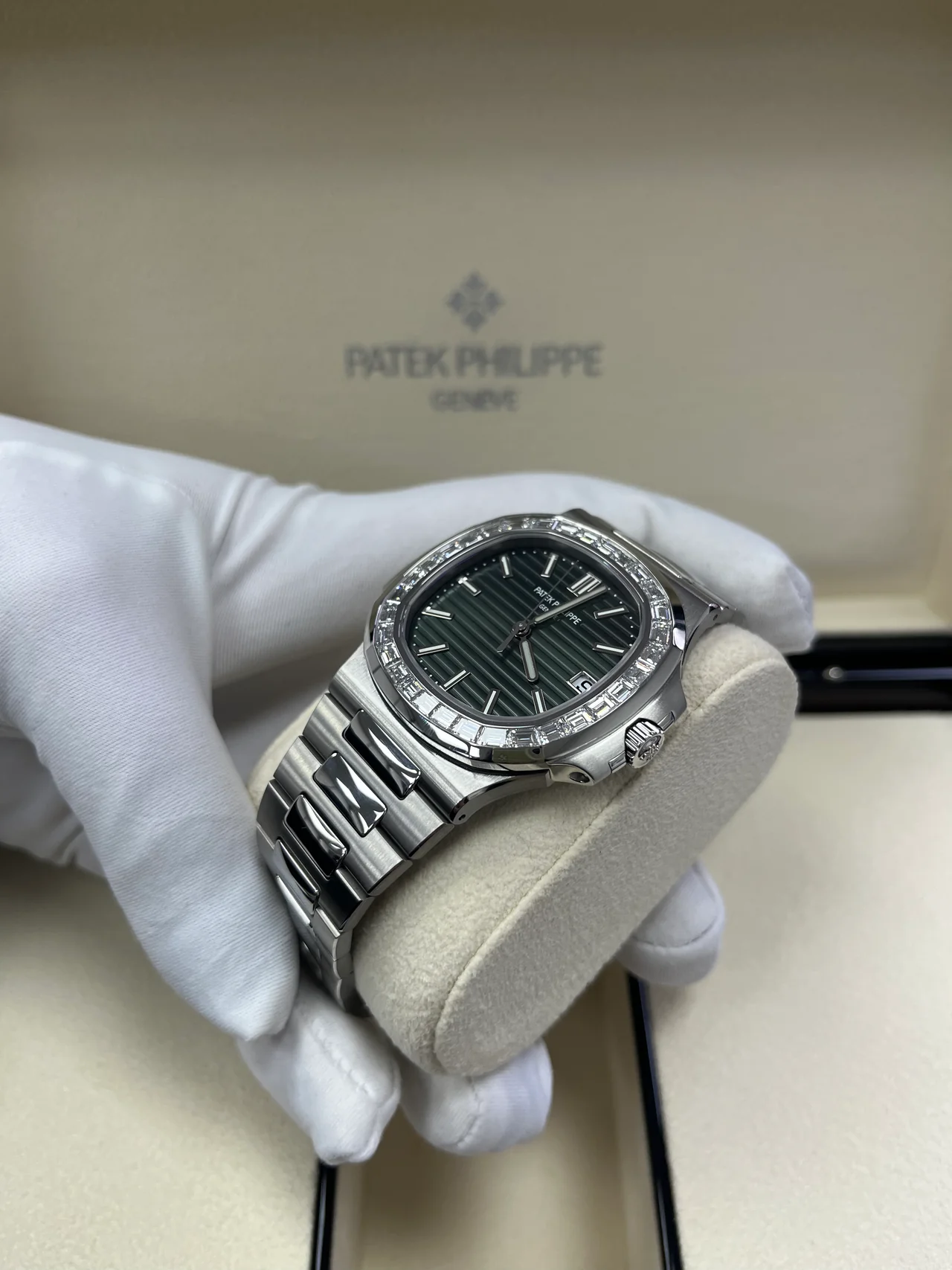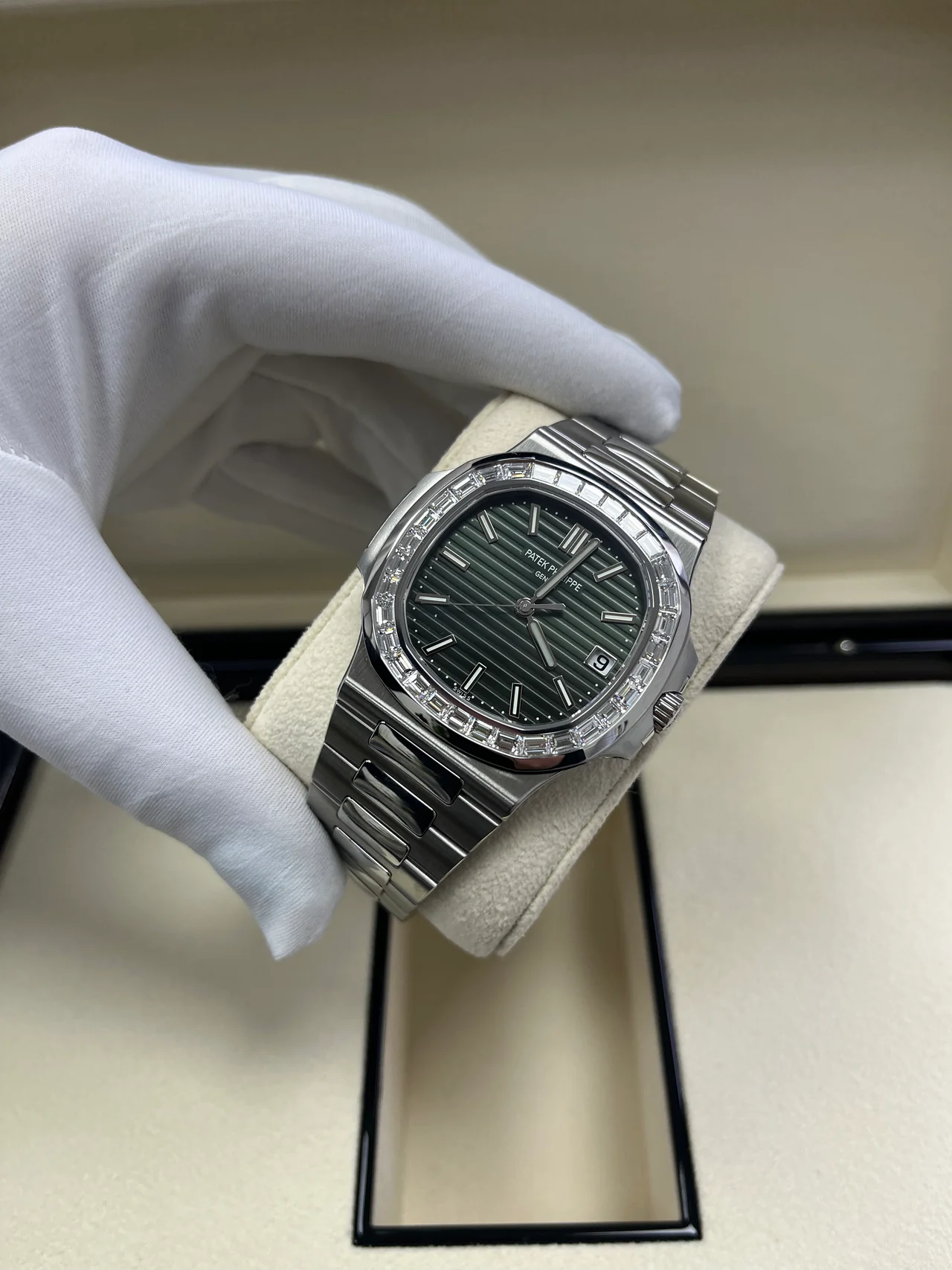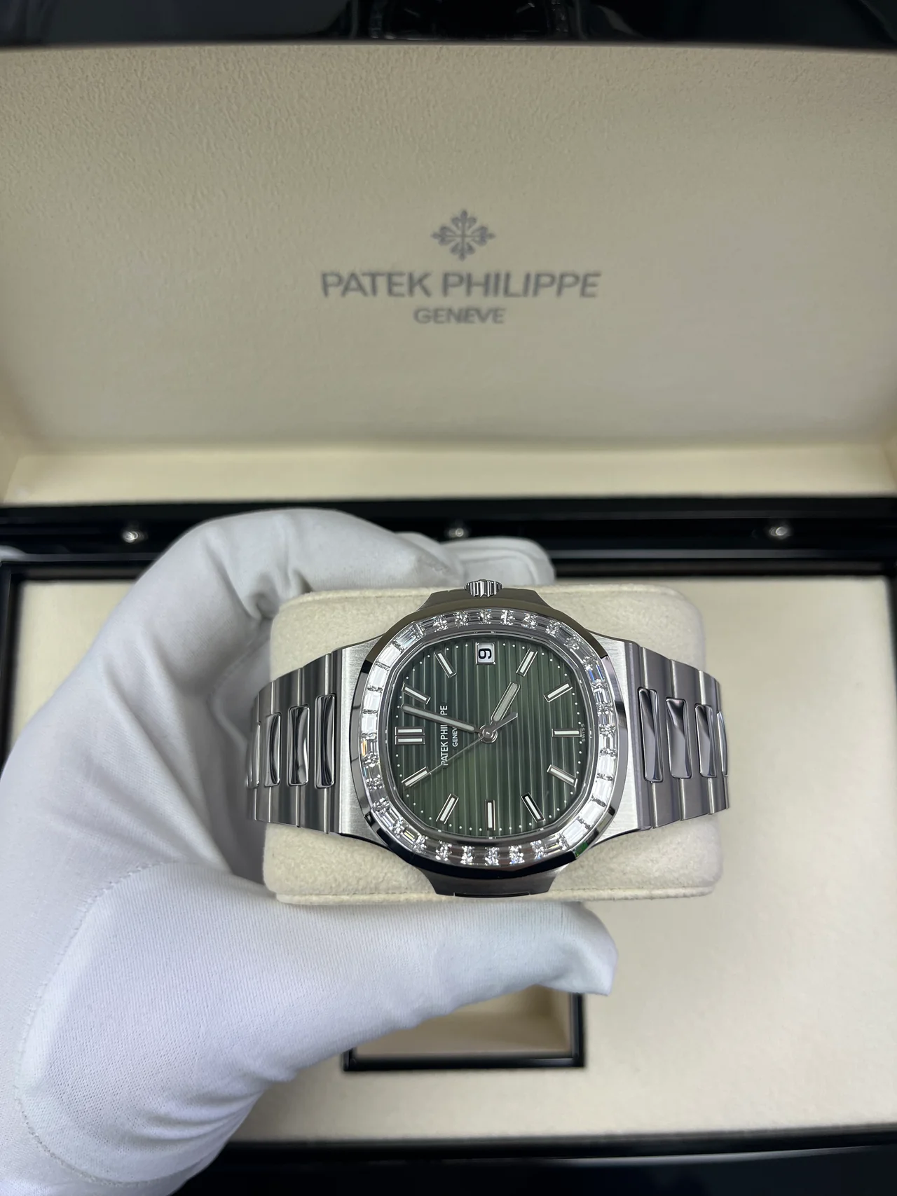 • Patek Philippe Nautilus 40mm 5711-1300A-001 Green Dial & Diamond Bezel in Stainless Steel Bracelet