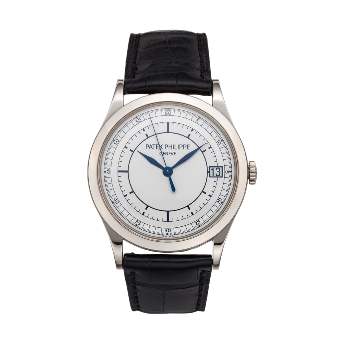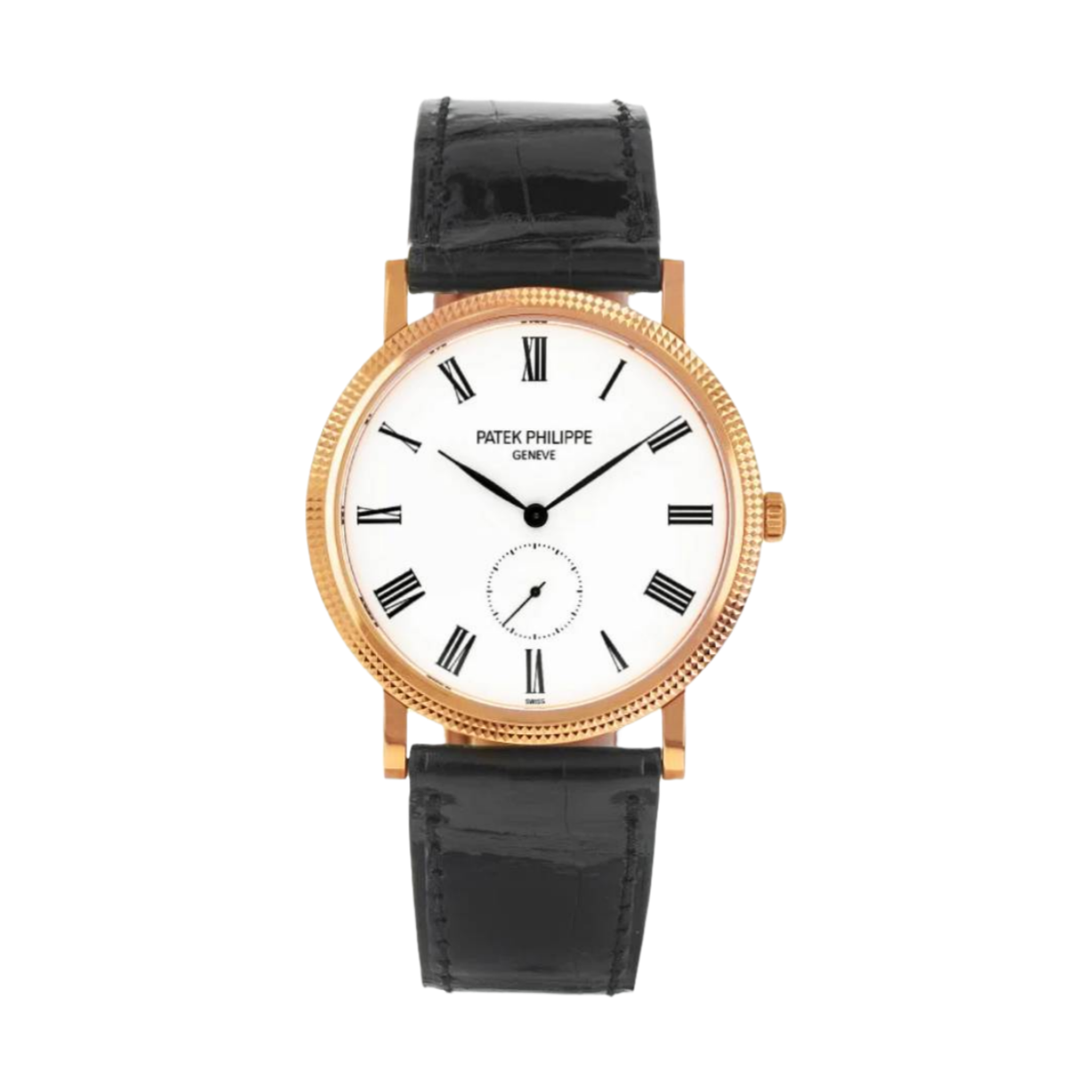 Patek Philippe Calatrava 36mm 5119R-001 White Dial in 18K Rose Gold Black Leather Strap