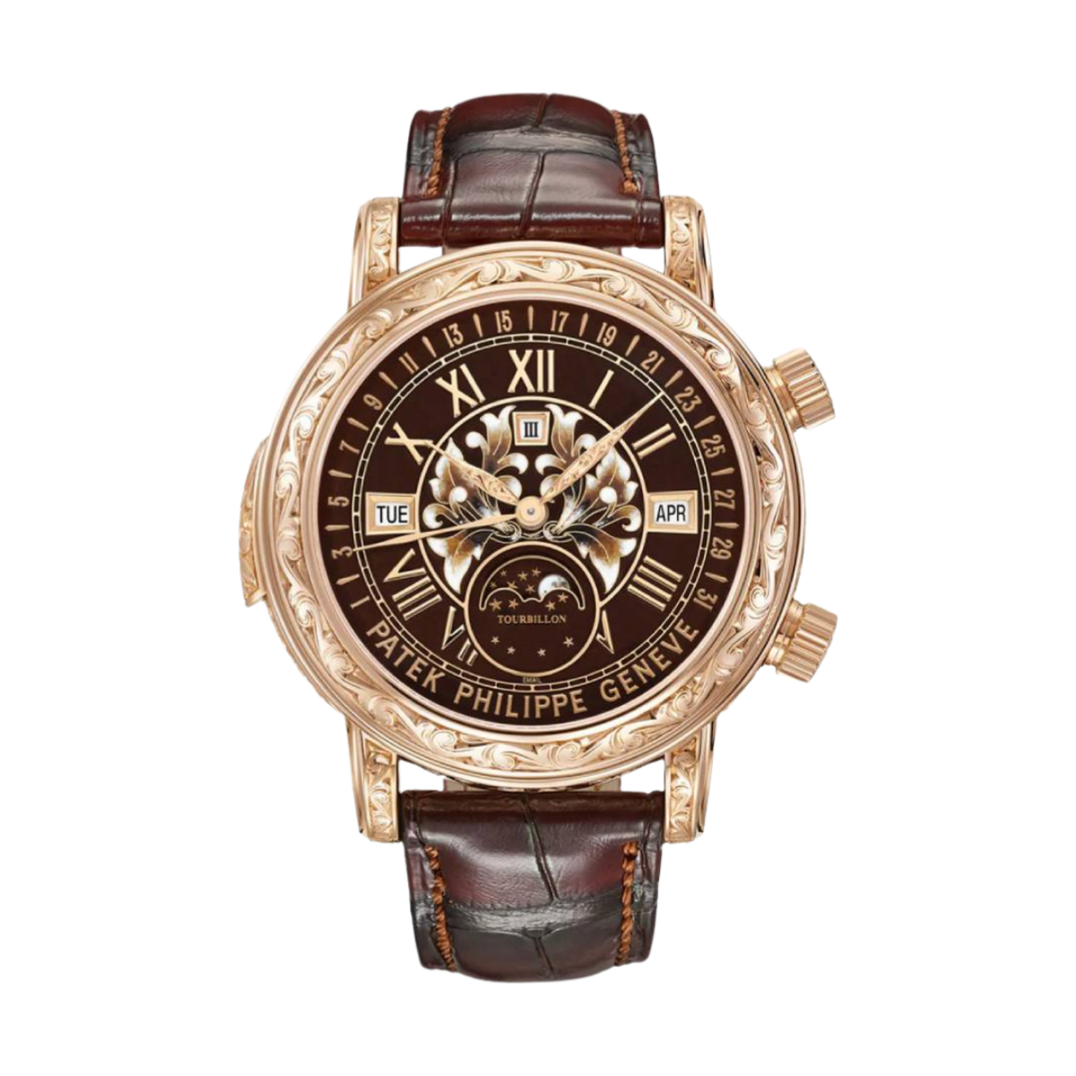 Patek Philippe Grand Complications Sky Moon Tourbillon 44mm 6002R-001 Brown Enamel Moon-Phase Dial in 18K Rose Gold Brown Leather Strap