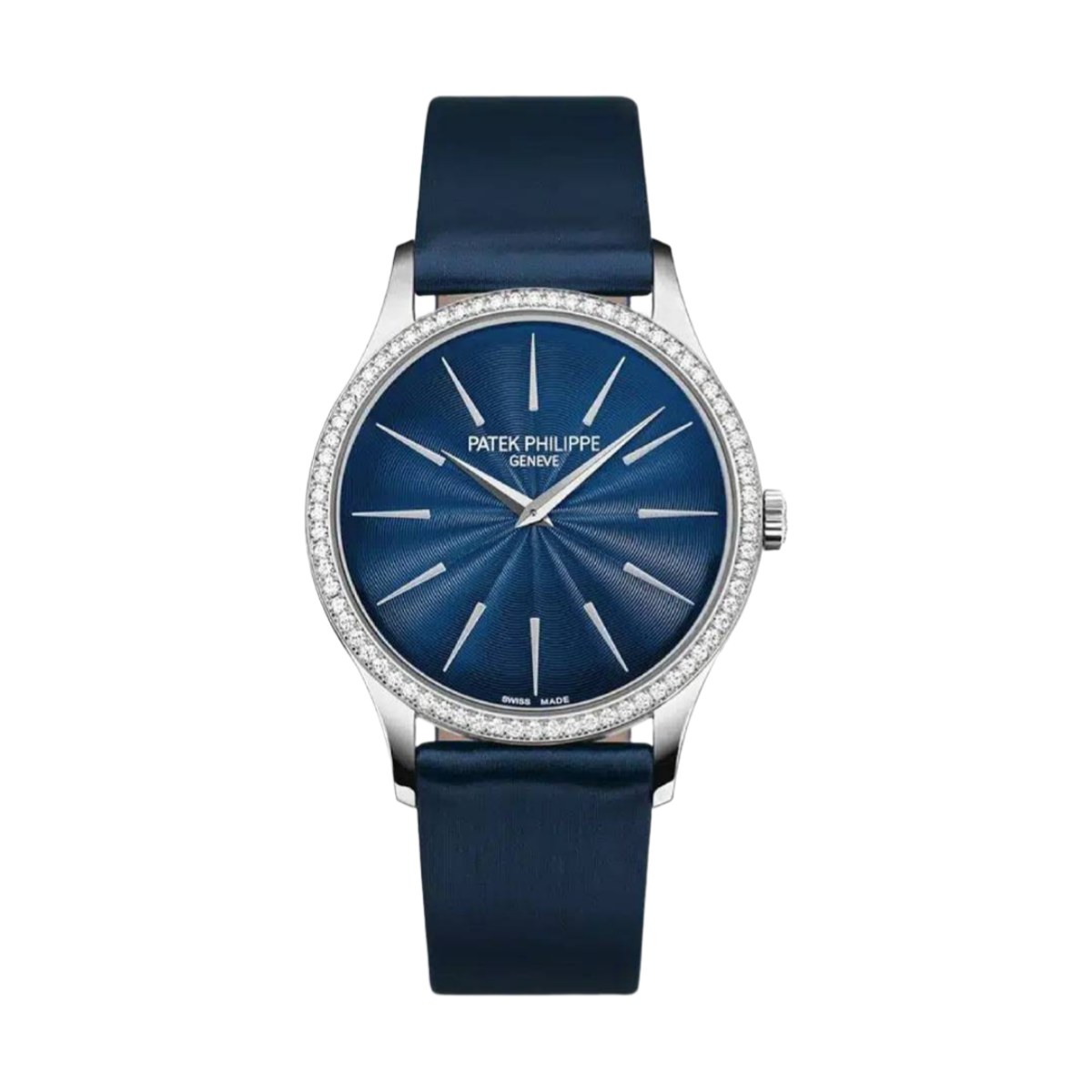 Patek Philippe Calatrava 33mm 4897-300G-001 Night Blue Dial & Diamond Bezel in 18K White Gold Midnight Blue Brushed Calfskin Strap