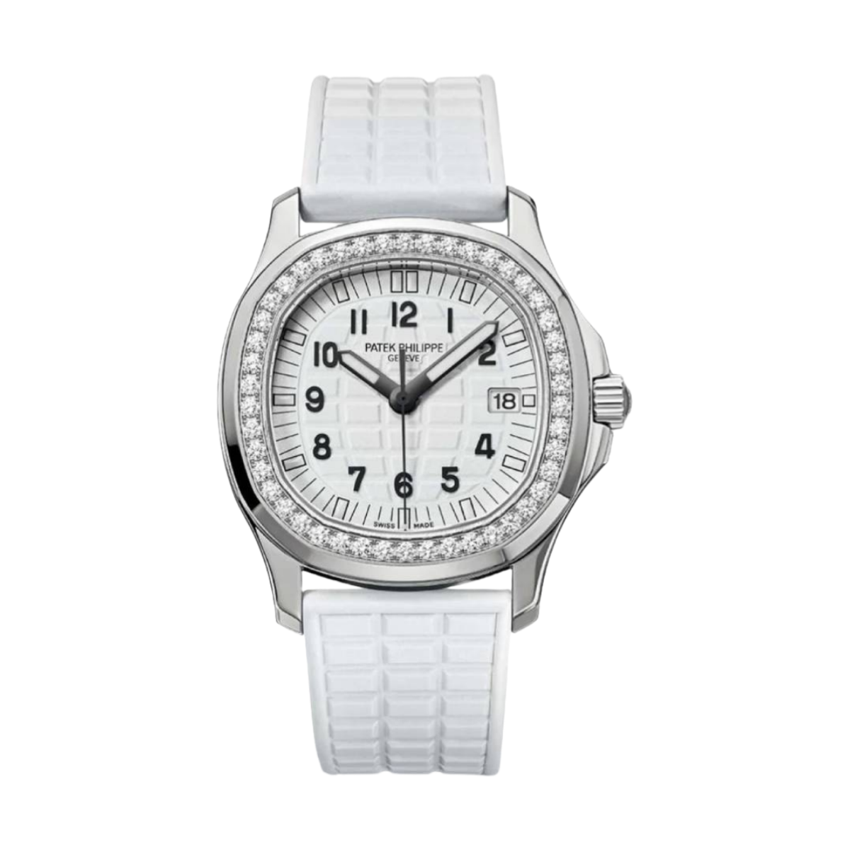 Patek Philippe Aquanaut 35.6mm 5067A-024 Pearly White Dial & Diamond Bezel in Stainless Steel Case Pearly White Polymer Rubber Strap Ladies Watch