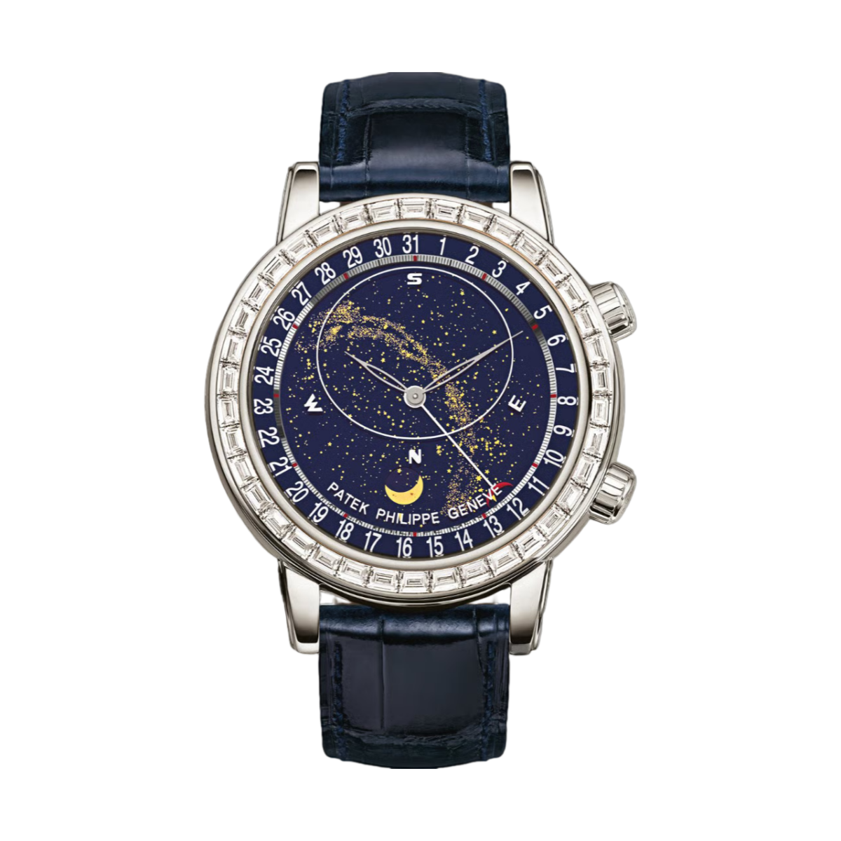 Patek Philippe Grand Complications Celestial 44mm 6104G-001 Blue Disks Sky Background & Moon-Phase Dial & Diamond Bezel in 18kt White Gold Shiny Blue Leather Strap