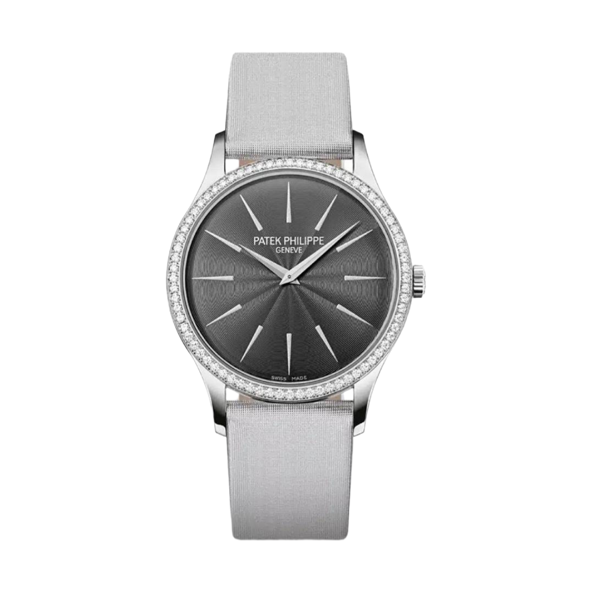 Patek Philippe Calatrava 33mm 4897G-010 Silver Gray Dial in 18K White Gold Silver Gray Brushed Satin Strap Ladies Watch
