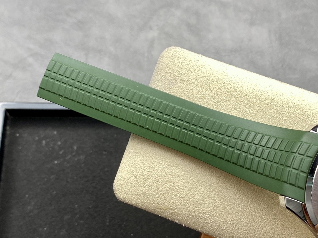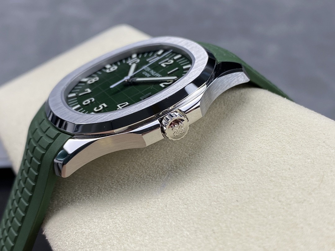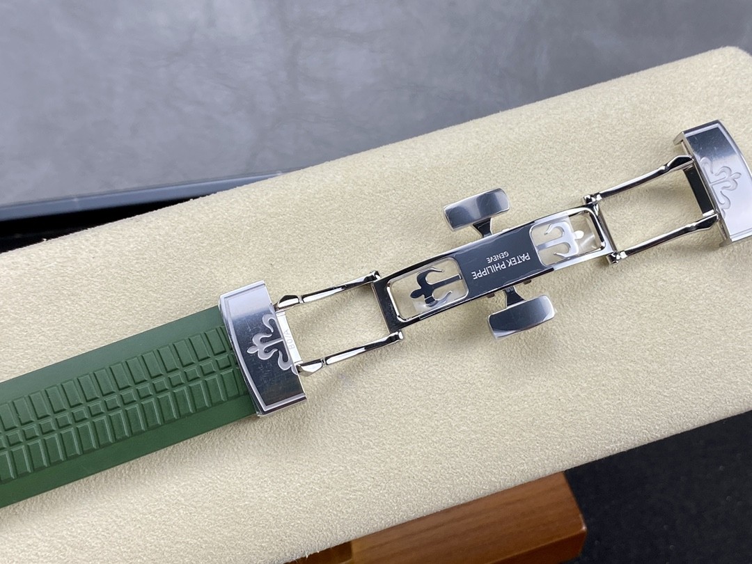 Patek Philippe Aquanaut 5168G-010 White Gold 42.2mm. The watch has Khaki Green Embossed Dial w/ Golden hands and Fixed Bezel. The Case is White Gold w/ Caliber # 324 S C w/ 29 Jewels, 45 hours power reserve. The Bracelet is Composite material with Fold-over clasp. The Water-resistant is up to 120 m. The Watch comes complete with Patek Philippe Papers & Original Patek Philippe Box. Covered with Patek Philippe 2-Year Warranty.