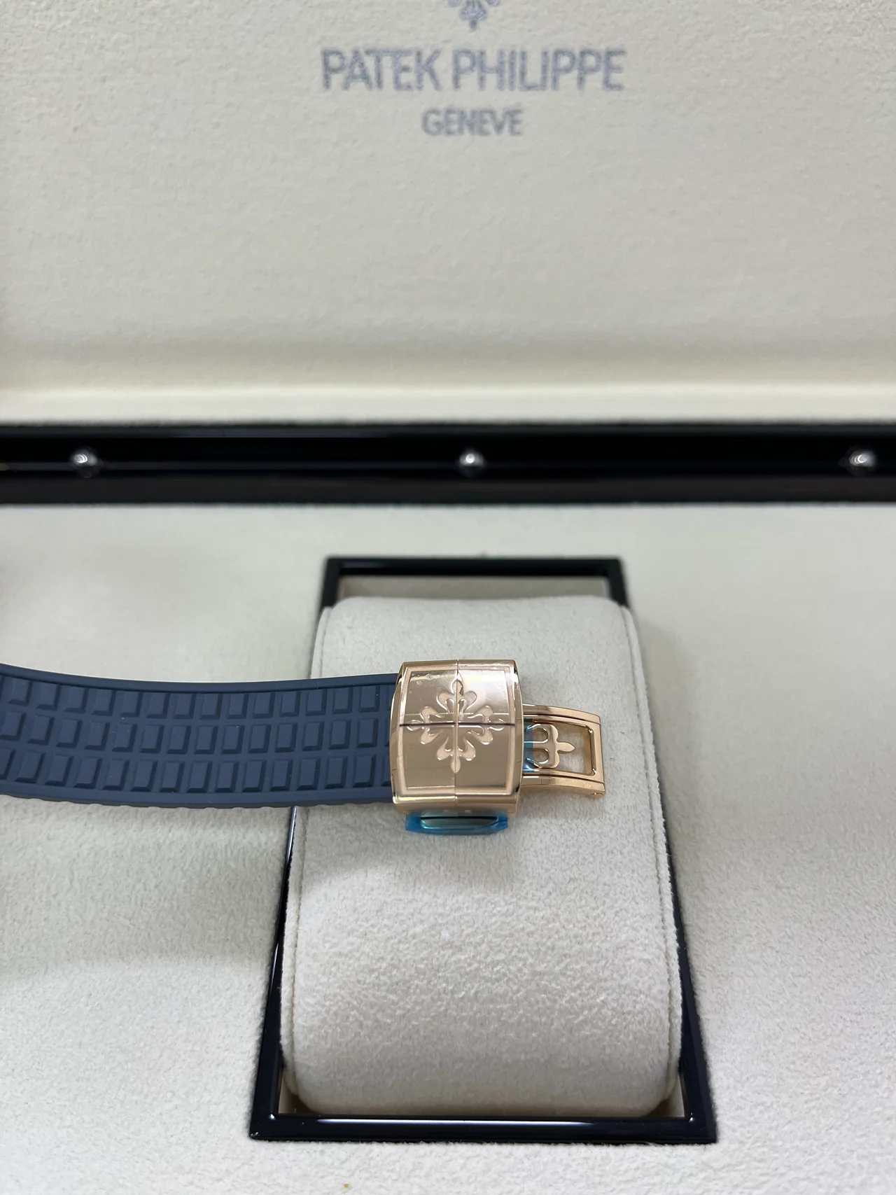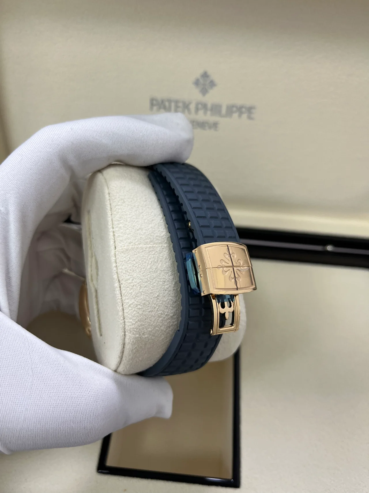Paired with a blue-gray rubber strap, seamlessly matching the dial, the Aquanaut Luce 5261R-001 offers both comfort and durability, secured by a rose gold fold-over clasp. This timepiece is a remarkable choice for collectors who appreciate the blend of high horology, luxurious materials, and contemporary sport-chic design that defines the Aquanaut collection.