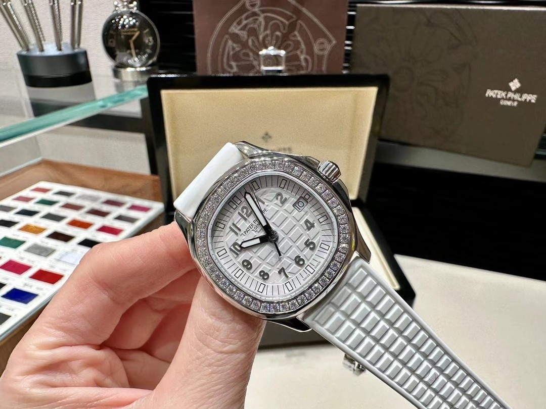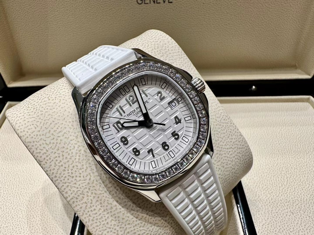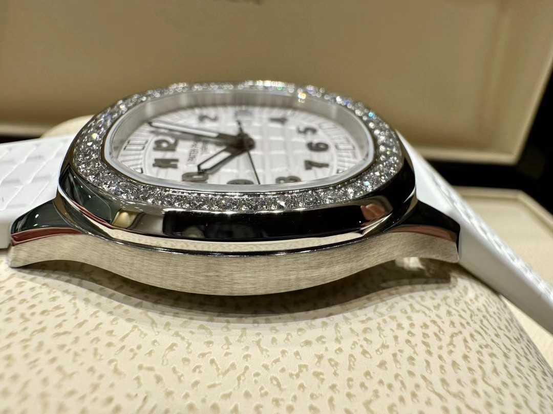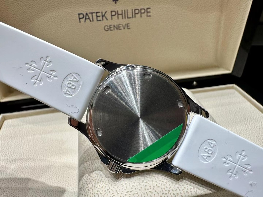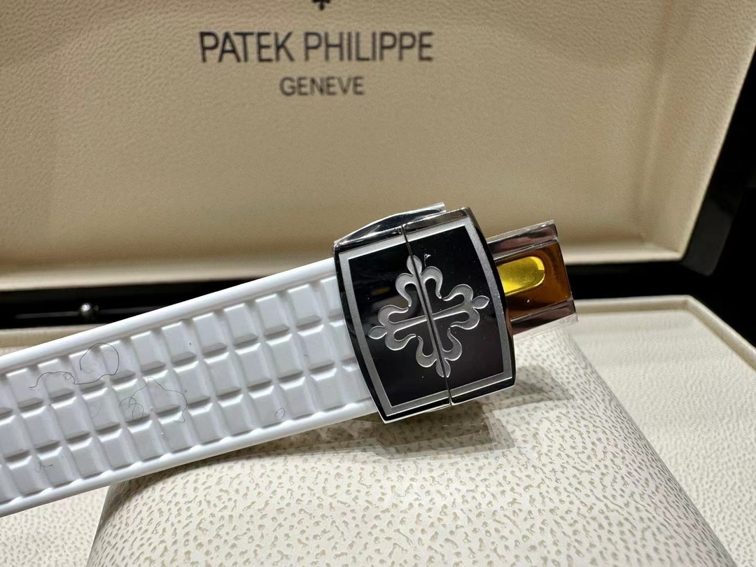 Patek Philippe Aquanaut 5067A-024 Steel 38.80mm. The watch has Glitter White Dial w/ Golden hands and Fixed Bezel. The Case is Steel w/ Caliber # E23‑250 S C w/ 8 Jewels, 3 years power reserve. The Bracelet is Pearly white polymer material with Fold-over clasp. The Water-resistant is up to 120 m. The Watch comes complete with Patek Philippe Papers & Original Patek Philippe Box. Covered with Patek Philippe 2-Year Warranty.