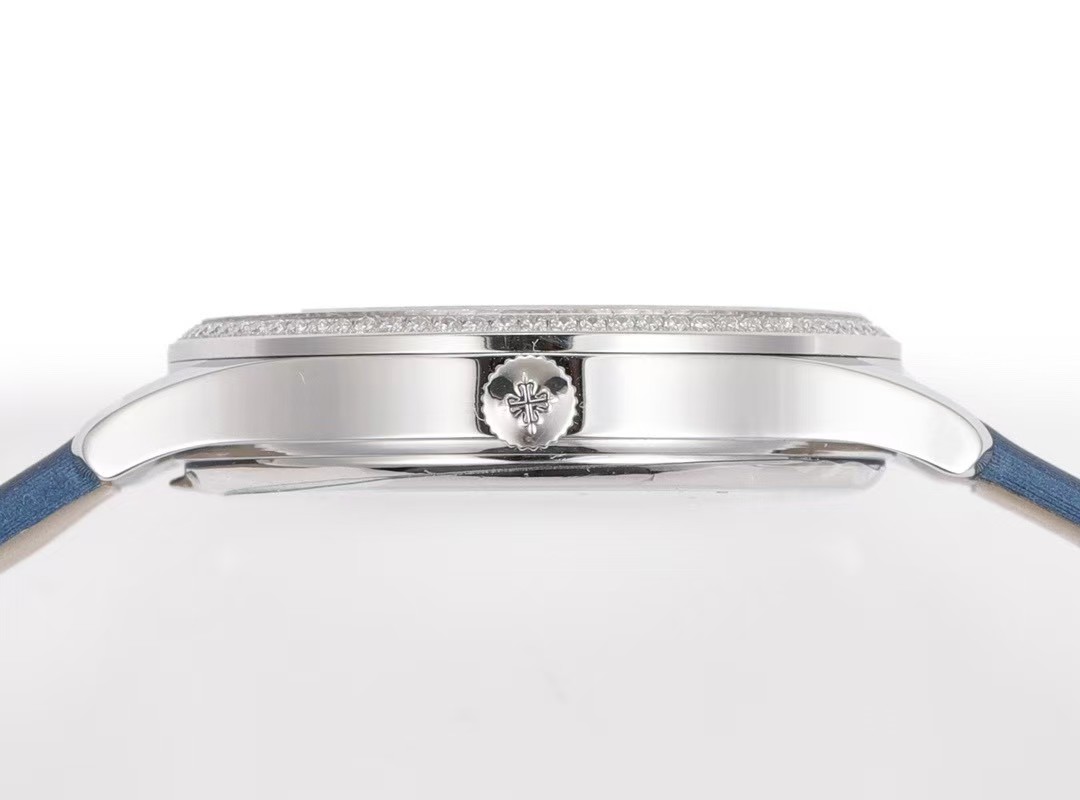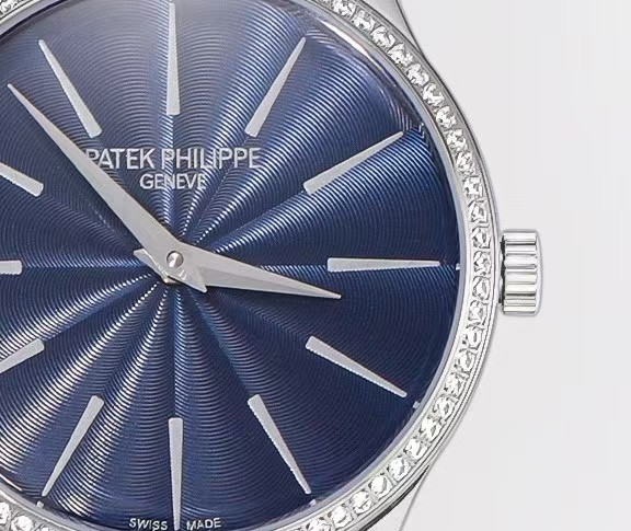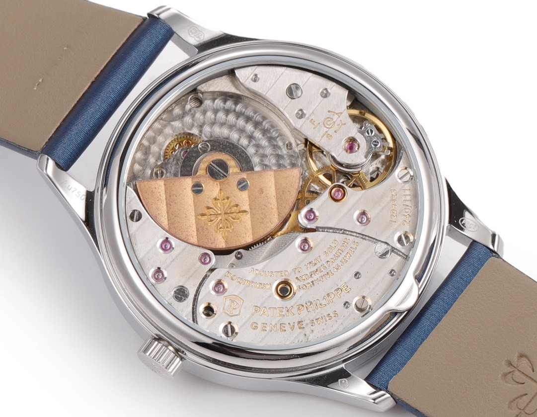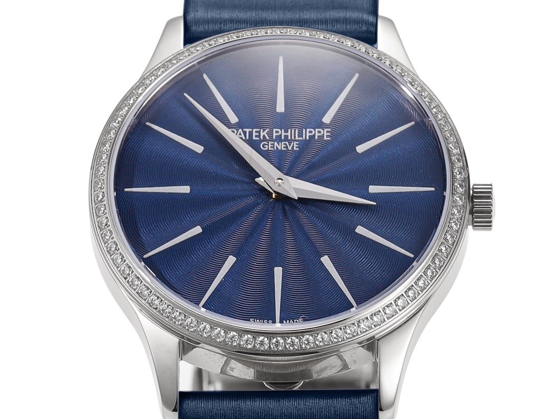 Reference Number 4897G-001 Case Size 33mm Face Color Night Blue Guilloched Hour Markers Coated with powdered gold. Case Material 18k White Gold Movement Mechanical (Automatic) Bracelet Material Night blue brushed satin strap Clasp Type Pin buckle Features Mechanical manually wound movement. Caseback Sapphire-crystal case back Model Calatrava Water Resistance Rating 30 m Box/Papers Original Patek Philippe Box and Papers Warranty Balance of Patek Philippe 2-year Warranty Country/Region of Manufacture Switzerland Display Analog