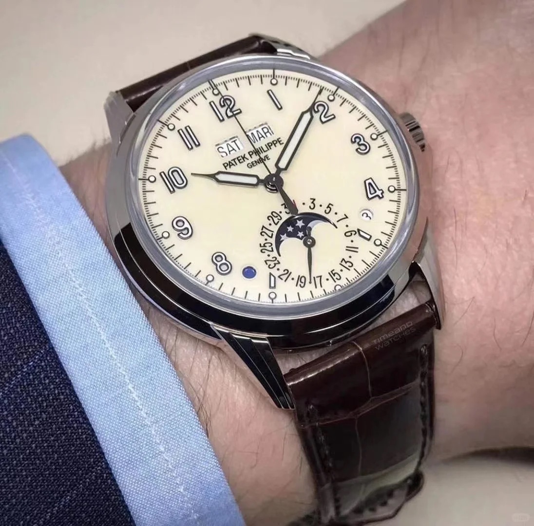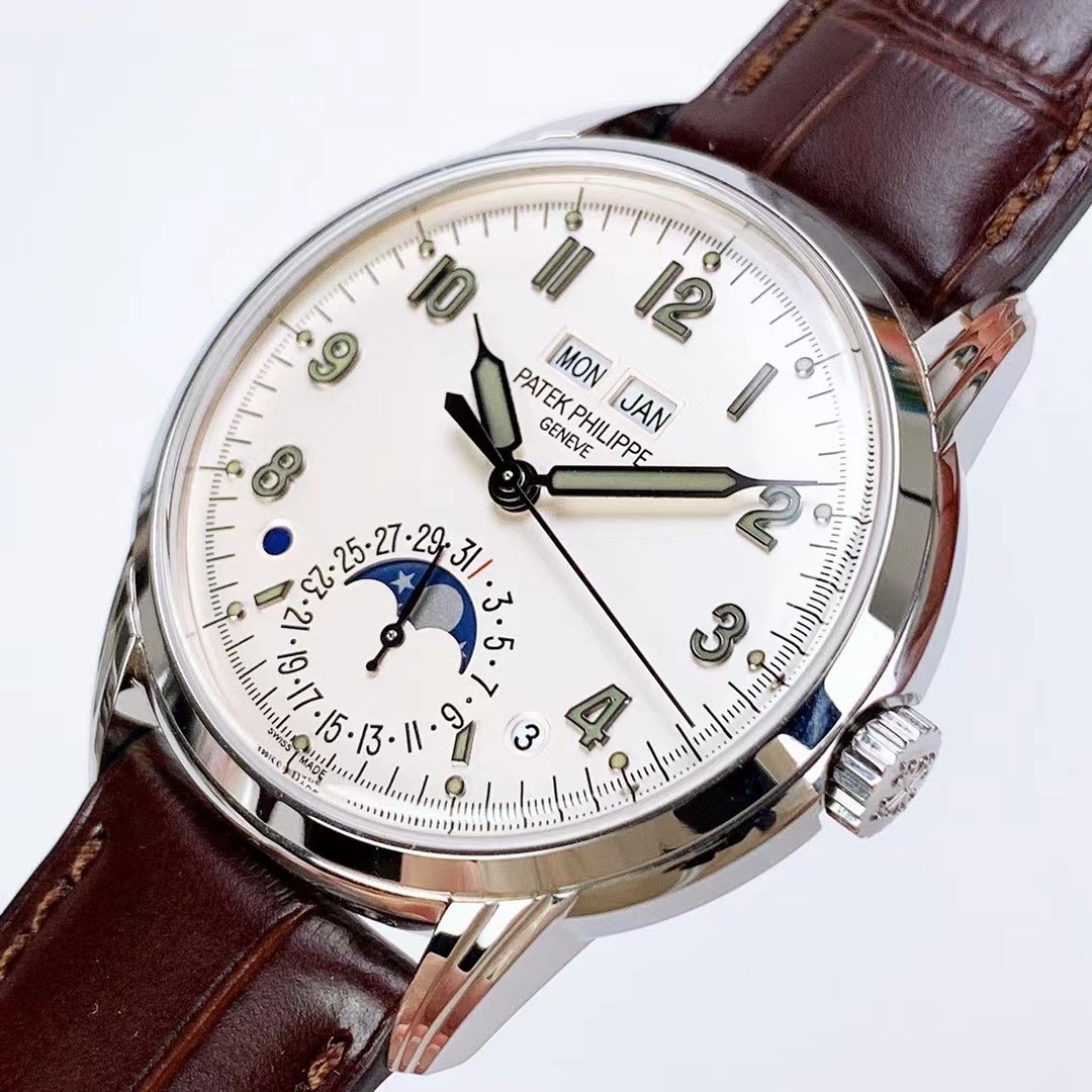 Patek Philippe Grand Complications 5320G-001 White Gold 40 mm. The watch has Lacquered Cream Dial w/ Golden hands and Fixed Bezel. The Case is White Gold w/ Caliber # 324 S Q w/ 29 Jewels , 45 hours power reserve. The Bracelet is Alligator strap with square scales with fold-over clasp. The Water-resistant is up to 30 m. The Watch comes complete with Patek Philippe Papers &Original Patek Philippe Box. Covered with Patek Philippe 2-Year Warranty.