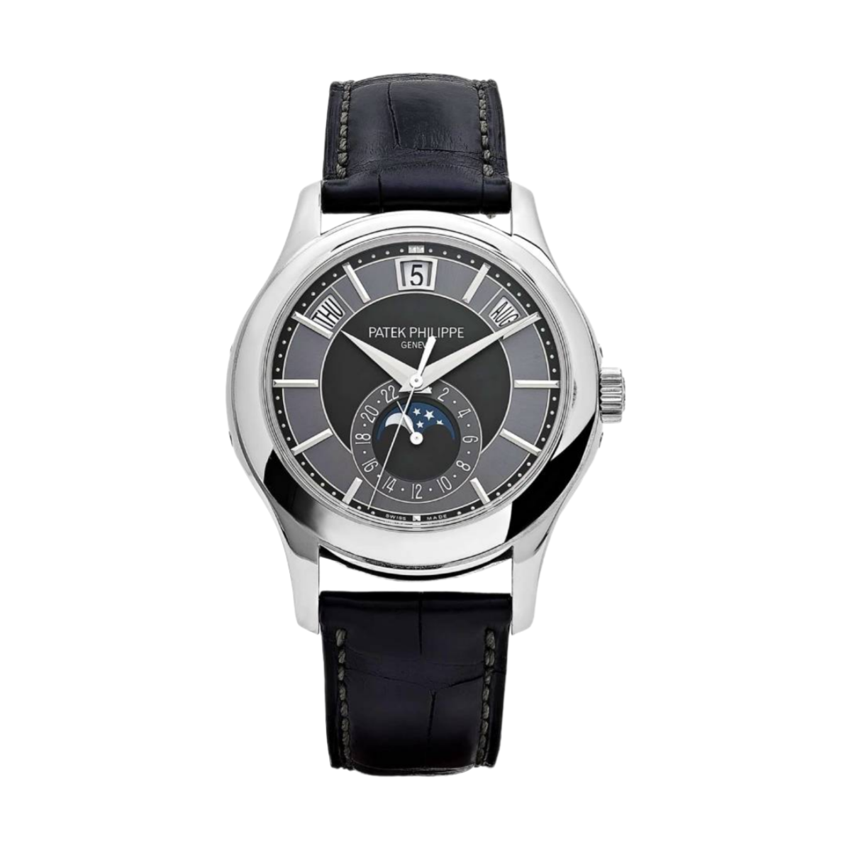 Patek Philippe Complications Annual Calendar 40mm 5205G-010 Black Gray Moon-Phase Dial in 18K White Gold Black Alligator Strap