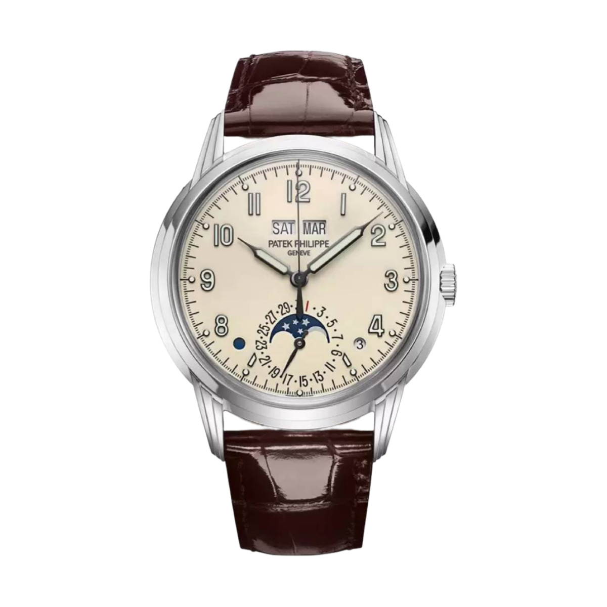 Patek Philippe Grand Complications Perpetual Calendar 40mm 5320G-001 Cream Moon-Phase Dial in 18K White Gold Brown Alligator Strap