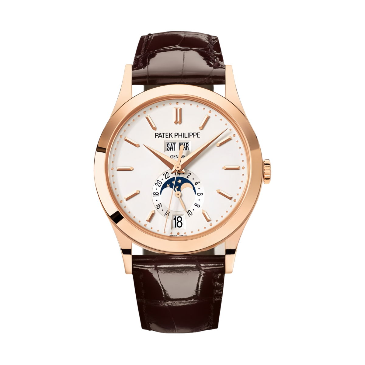Patek Philippe Complications Annual Calendar 38.5mm 5396R-011 Silver Moon-Phase Dial, 18K Rose Gold Brown Leather Strap