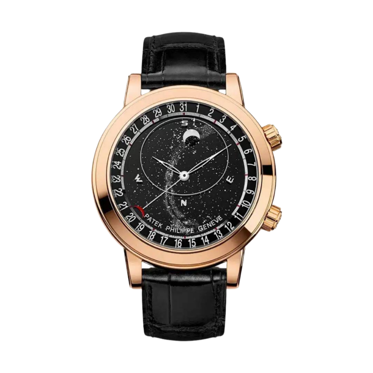 Patek Philippe Grand Complications Celestial 44mm 6102R-001 Black Disks Sky Background & Moon-Phase Dial in 18K Rose Gold Shiny Black Alligator Strap