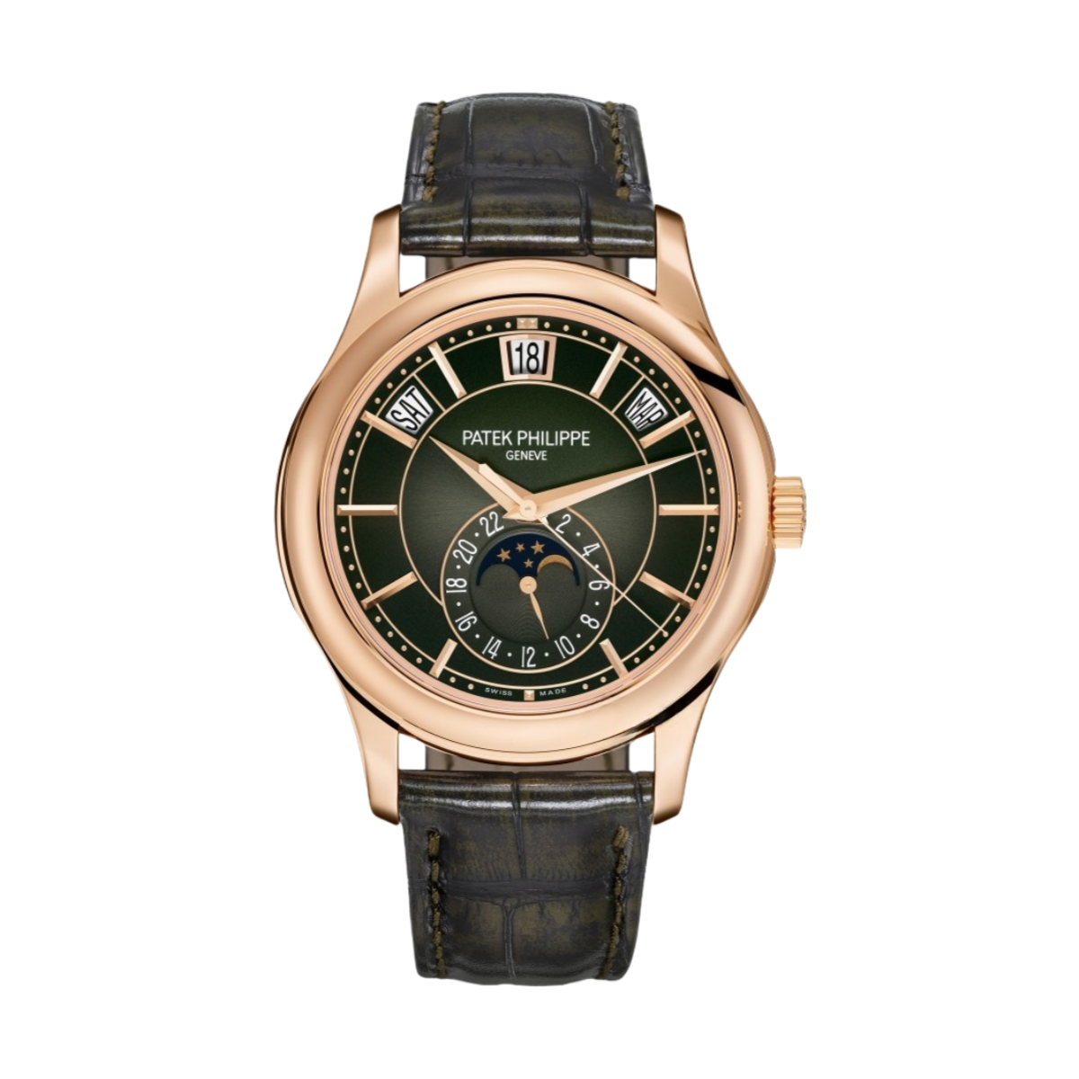 Patek Philippe Complications Calatrava Travel Time 40mm 5205R-011 Olive Green Dial in 18K Rose Gold Green Alligator Strap