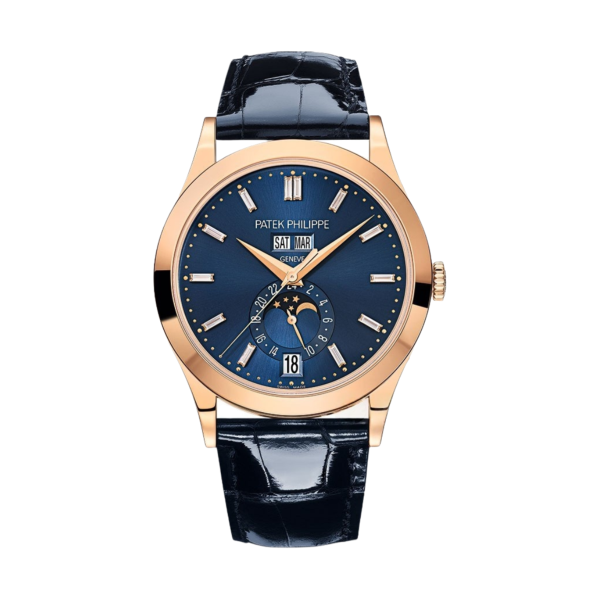 Patek Philippe Complications Annual Calendar 38.5mm 5396R-015 Blue Moon-Phase Diamond Dial in 18K Rose Gold Blue Alligator Strap
