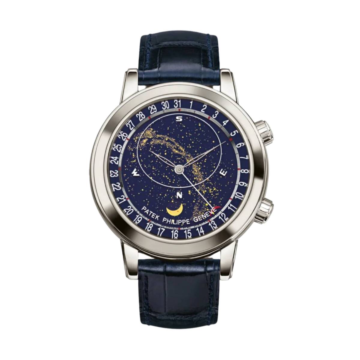 Patek Philippe Grand Complications Celestial 44mm 6102P-001 Blue Disks Sky Background & Moon-Phase Dial in Platinum Shiny Navy Blue Alligator Strap