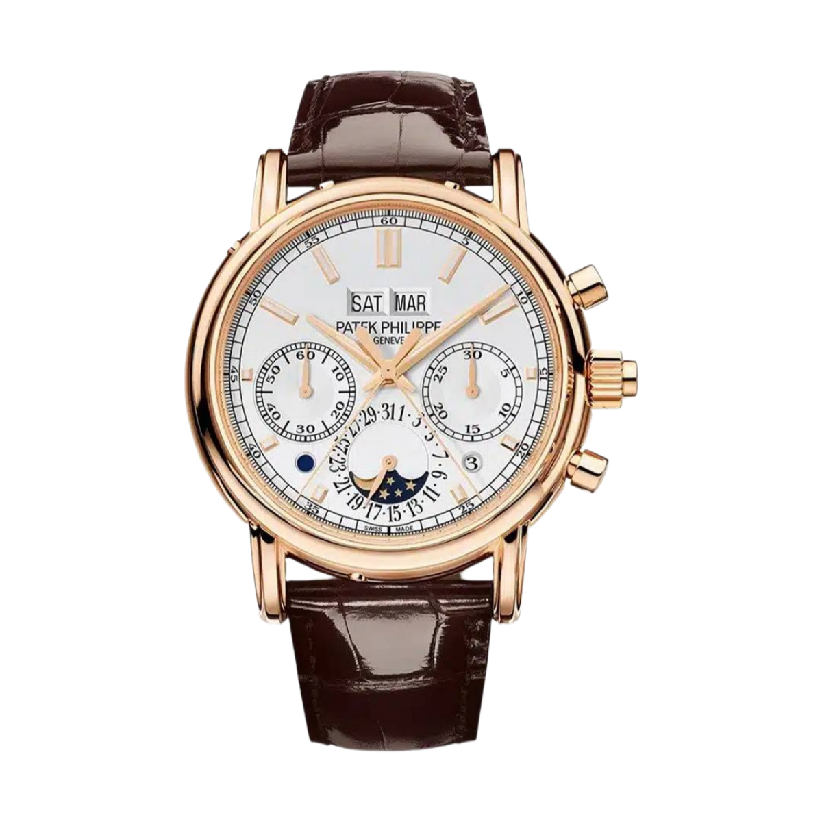 Patek Philippe Grand Complications Chronograph Perpetual Calendar 40.2mm 5204R-001 Silver White Moon-Phase Dial in 18K Rose Gold Shiny Chocolate Brown Alligator Strap
